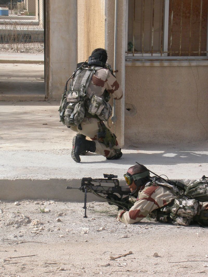 第4突击队(4 commando)士兵在吉布提特种兵训练中心进行城市战训练的照片,注意这种向右抛壳的无托枪左手射击的姿势,打得不会太准,但在近距离短点射的覆盖会很好。