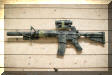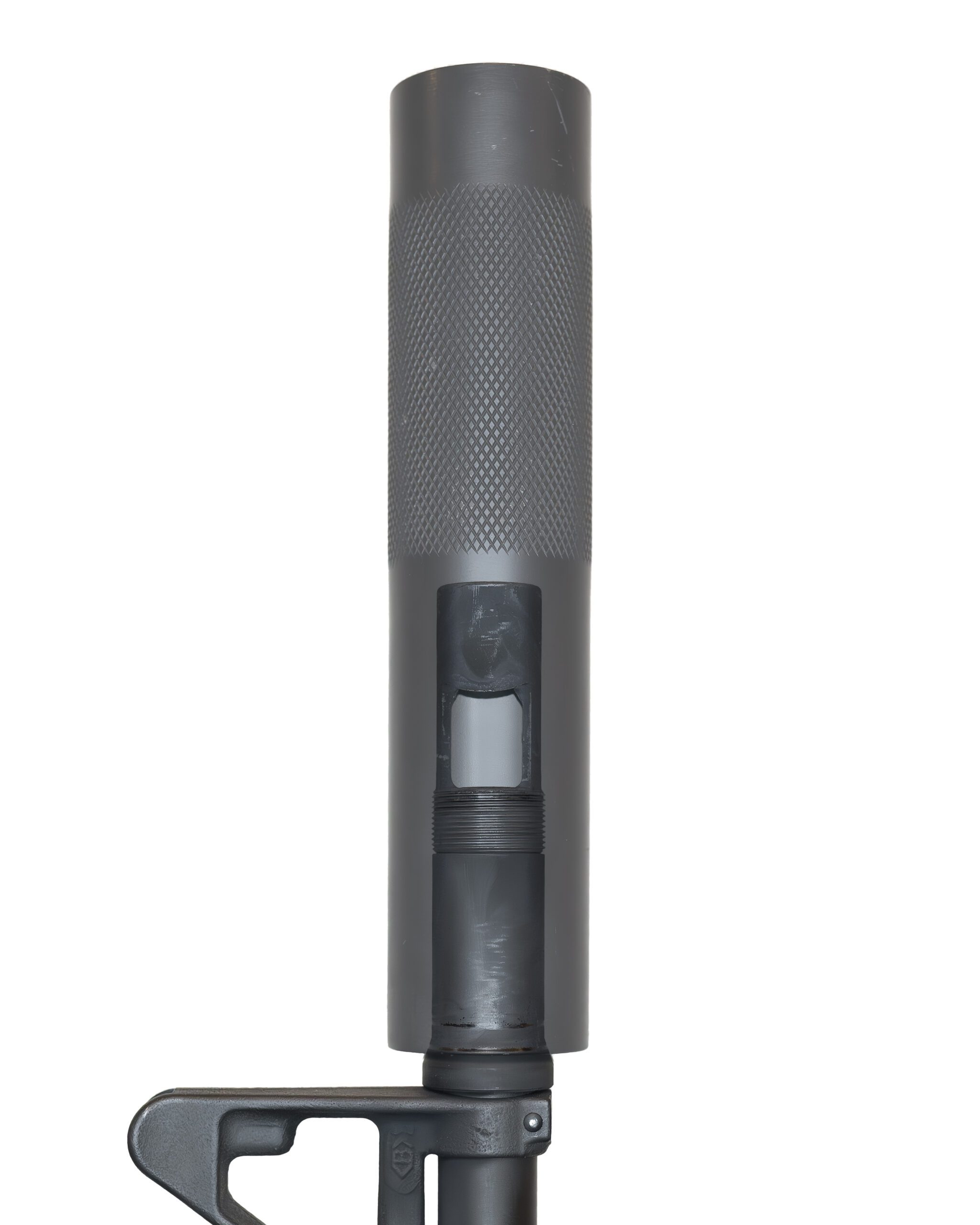 ![]() 民间轻武器玩家利用AEM5消声器将他的AR步枪改装成“戈登式卡宾”时,需要在刺刀卡笋上套上一个刺刀座固定套环。另外因为AEM5的安装深度比较短,所以还必须截短枪管。注意:AEM5配套的刺刀座套环与M4-Delta的并不相同,因为其伸出的轴套是锥面形状 |