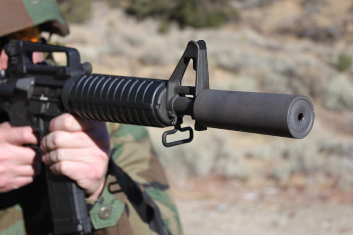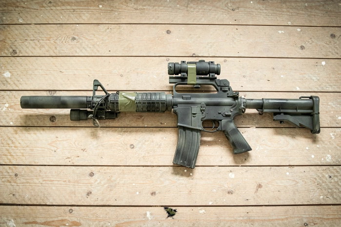 使用M4-Delta消声器模仿海湾战争中护卫施瓦茨科普夫的三角洲队员的CAR-15