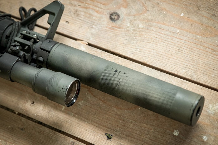 OPS第3型消声器因为采用了“覆盖枪管式”设计,其外套管向后延伸包裹住CAR-15卡宾枪的整根外露枪管,一直贴到三角形准星座上,因此在很久以前笔者本人曾误以为这种消声器是安装在Colt 733之类的短枪管卡宾枪上。